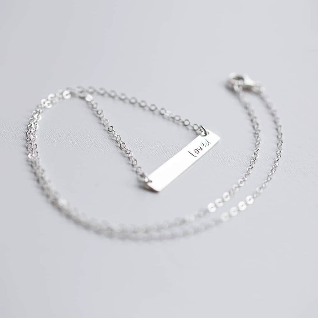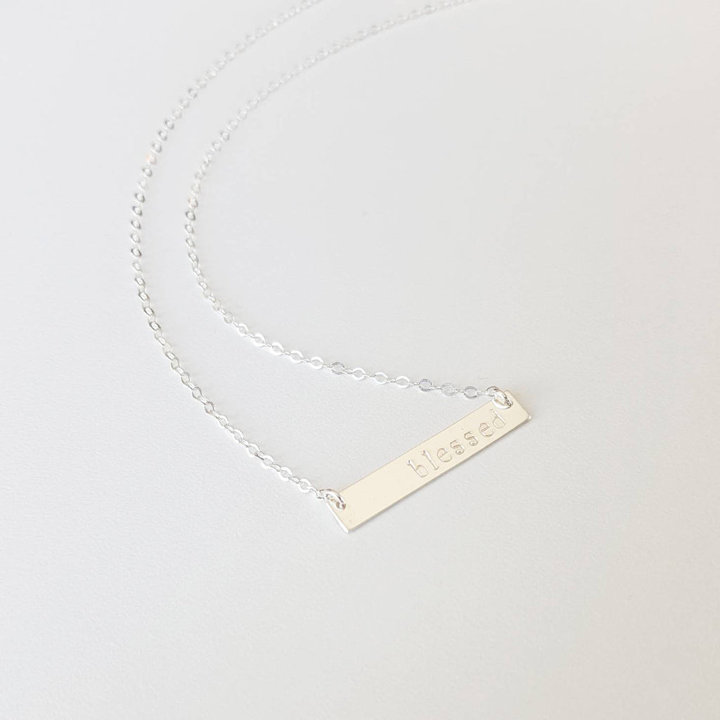 These minimalist .925 Sterling Silver Bar Necklaces are hand-stamped, personalized with your word. Each one is stamped one letter at a time, with metal stamps and a hammer. Each necklace is unique and one of a kind, making beautiful, meaningful gifts. A reminder, encouraging word, name, scripture reference, date, a heart, or a few...you get to choose.